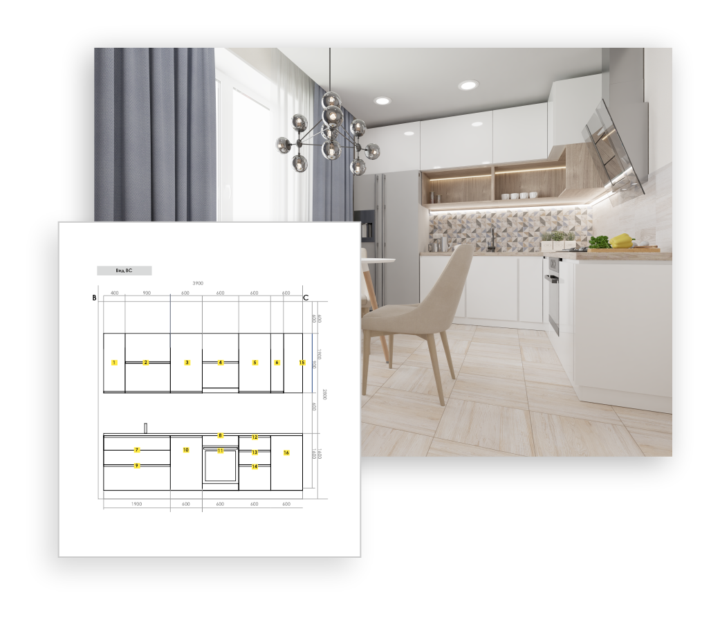 Мы предлагаем вам удобный планировщик кухонь, чтобы вы: